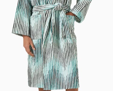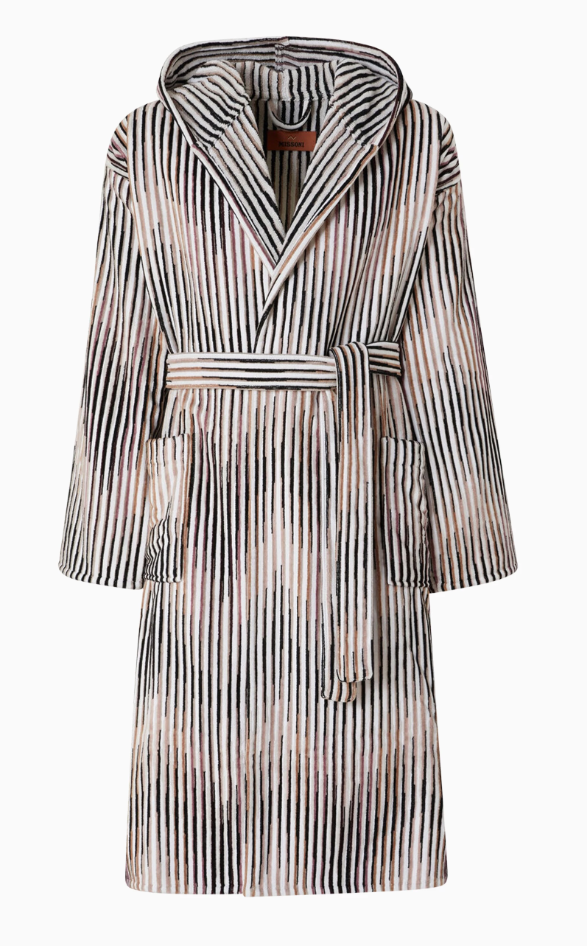 Missoni Home bathrobes are instantly recognizable thanks to the brand’s iconic zigzag patterns and vibrant color palettes. More than a simple bathrobe, this piece is a design statement that blends Italian craftsmanship with bold visual identity, making it a favorite for stylish homes and luxury interiors.